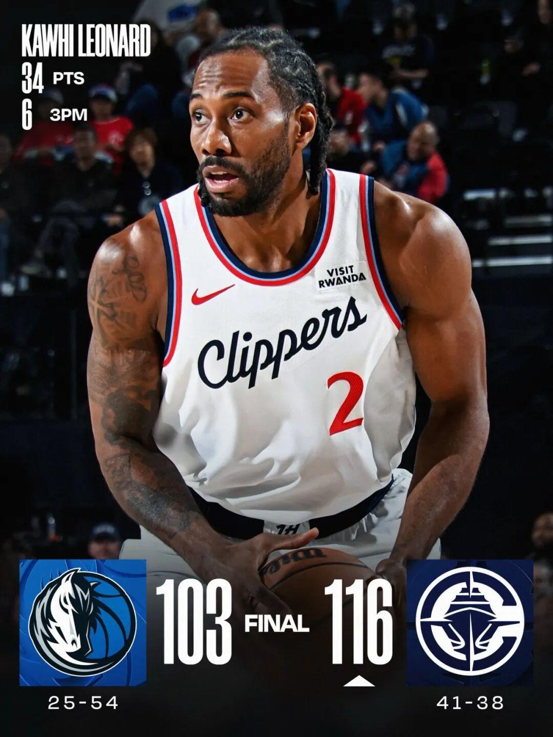 常规赛,快船主场116-103战胜独行侠。